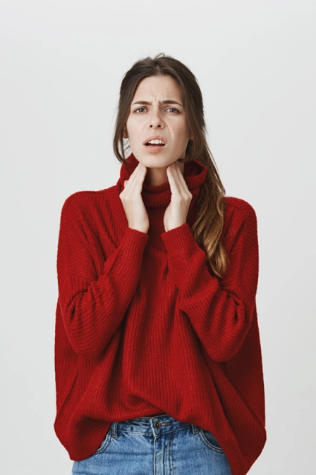 2. Признаки сопровождаются легкой болью в горле, небольшим повышением температуры и общей слабостью.